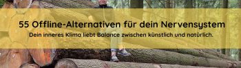 55 Offline-Alternativen für dein Nervensystem Durch all die digitalen Geräte, Informationstechnologien und Künstlichkeit wird uns vieles abgenommen, aber auch viel Natürliches ausgesperrt. Wir suchen Lösungen für all unsere Probleme in der digitalen Welt – bewusst oder unbewusst. Anstatt uns von Anstrengungen und Überreizung zu erholen und runterzufahren, fahren wir Bildschirme hoch und lassen uns mit … 55 Offline-Alternativen für dein Nervensystem weiterlesen