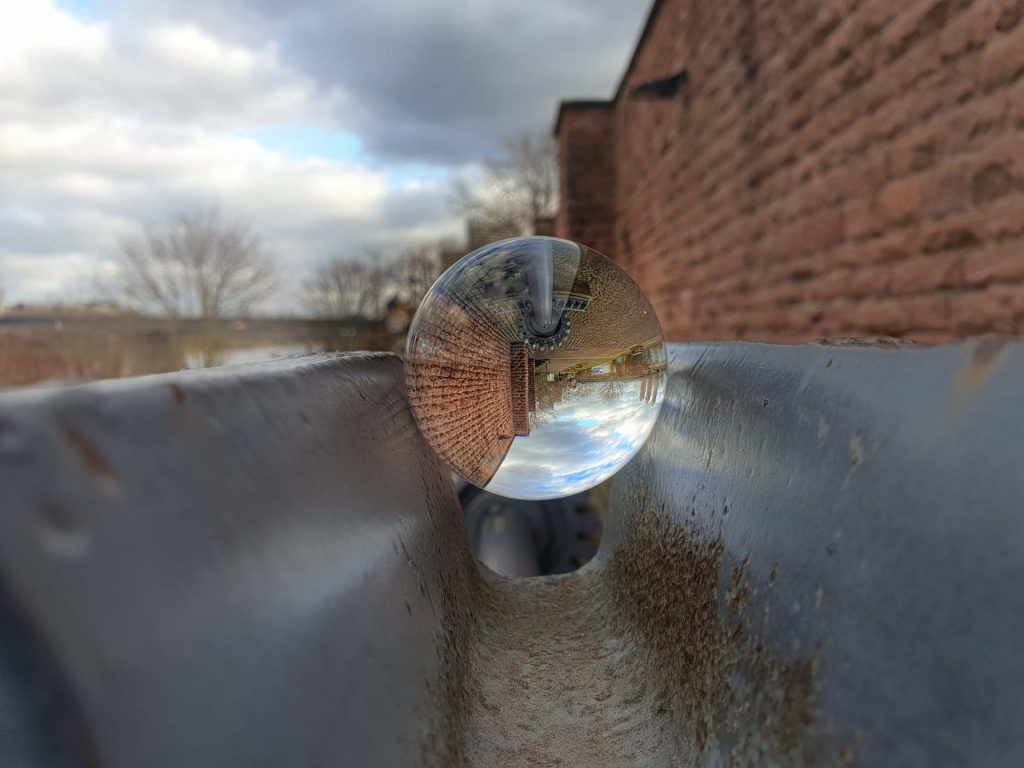 Neulich war ich im Odenwald unterwegs. Auf dem Katzenbuckel gibt es eine alte Schanze – sehr verrottet und schon ein Lost Place, wenn man das so bezeichnen kann. Ich packte meine Kugel aus und kletterte dort ein wenig herum. In der Zeit liefen zwei Damen vorbei, bis sie mich schließlich fragten, was ich da mit der Kugel mache. Wir kamen ins Gespräch und sie waren total interessiert, wie die Fotos aussehen.